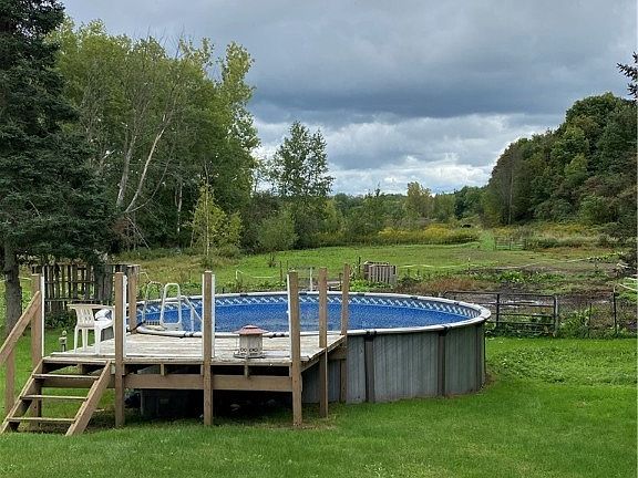 We have a beautiful country setting and it is perfectly set up for small homestead living and horses. This is a diamond in the ruff with 4 1/2 beautiful acres on one side of the road and 1-acre wooded parcel across the street. We have a 3-bay garage under the home with a workshop. The third bay (Workshop) has a new roof. Building 1. 10x10 was used for chicken and dogs. Building 2. 12x10 Stand up horse stall with hay storage up top. Building 3. 24x40 the current horse barn has 5- 10x12 stalls, 1 tack room, feed area and hay storage. The property has 2 paddocks and horse arena. Has a above ground pool with a partially finished deck, the pool is not currently operational it needs a liner but has all the right parts to fix it minus the liner and the parts will stay with the property. The home has a country kitchen, 3 bedroom 1 and 1/2 baths. The basement has a family room and mechanical/ laundry room and 2 car garage. Home features a geothermal and central air unit with a hole house generator for back up. Geothermal and hole house generator have not been run in a year. This property has so much to offer.