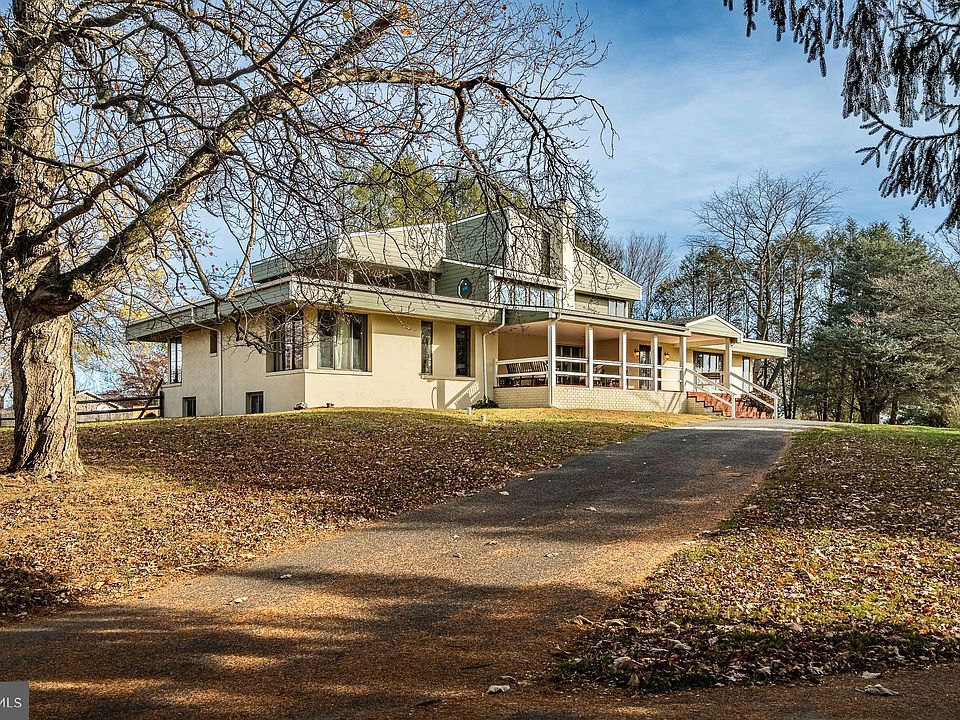 Tucked well off the road on top of a hill, the original stone cottage was built by a stone mason, Pasquale Scarpa, in the 1960's. In 1988 the entire house was renovated, creating an open floor plan, enclosing the back porch to create an oversized kitchen with spacious breakfast room, adding the 2nd floor with more two bedrooms, full tile bathroom, TV room, and 2nd floor covered deck... The First floor was wrapped in windows to take in the view. Natural light floods the first floor with views from every room. The upper deck has views of the sunset every night. The Covered Brick front porch welcomes you to 763 Denton Hollow. The foyer has two closets. One set up with cubbies. Open floor plan. Vaulted ceilings. The two-sided Brick Fireplace enhances the spacious living room, dining room, great room. Gourmet eat in white kitchen with island. Granite counter tops. Light-filled breakfast room. The primary bedroom is wrapped in windows and has two walk in closets. Tiled master bathroom features a Soaking Tub and separate shower. Three additional guest bedrooms on this level. The fouth bedroom has glass French doors . Presently used as an office. Updated White kitchen, with island, granite counters, breakfast room with door to deck. Huge living room/dining room/ sitting room with vaulted ceilings Second level: Wide open oak staircase leads you to the 2nd level. Sitting area/ TV room, Covered 2nd level deck, 2 additional bedrooms and hall bathroom. Finished walk out basement: Features a two bedroom, two bath guest suite with interior and exterior entrances. The guest suite its own laundry room/storage area and tile tile floors in walk out basement. Home was renovated in 2013 to including adding skylights, new roof, geo thermal heat/air added, new well, septic, many new windows. In 2019, the cedar siding was replaced with cement siding. The property has a four-stall barn, fenced pasture, and run-in shed. Bring your livestock. Come enjoy the tranquility, and views.
