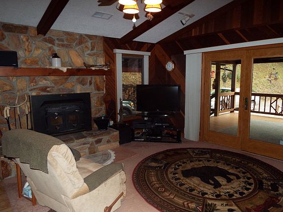 If your looking for end of the road privacy in a home that has been extremely well maintained, you've found it. Upstairs the home has a hugemaster bedroom and walk-in closet, Kitchen, a great rock fireplace with wood burning insert, large living room with high ceilings and a wonderful covered porch. On the upper level there is also a carport large enough for two cars and a driveway that circles the house. Downstairs is another large bedroom and bath, a laundry room, large living room with outside access and a one car garage and workshop. An outside storage building will give you room for the lawn mower and yard tools.
