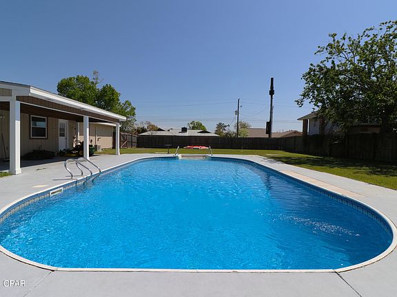 Check out this centrally located home in Panama City providing quick travel to all areas. Very close to Public Boat Ramps & Marinas, Historic Downtown PC, Hospitals, Doctors, Shopping, Tyndall AFB, Navy Base, Schools, Parks, Entertainment and Restaurants as well as the Beautiful Beaches of Panama City Beach or Mexico Beach! This spacious home features 4 bedrooms 2 baths, dining room, kitchen with newer refrigerator, living room with wood burning fireplace and French doors that open to the large covered porch and large inviting 21 x 42 pool! The pool liner was replaced in July 2023. New HVAC in Aug 2023, newer roof, windows, and doors! Home also features 35 solar panels to help reduce your power bill, they will be paid off at closing by seller. This home sits on a large corner lot and the backyard is fully fenced with a double privacy gate facing Malone Dr. and a new privacy fence with gate on the right side of the home facing Marywood. There is a well pump located in the front yard to help with filling the pool, washing cars, watering the yard or whatever your needs may be! New insulation and gutters have jut been installed!! Call your favorite Realtor to schedule your showing!! Thank you for considering this home. All information and measurements should be verified by buyer or buyer's agent if important.