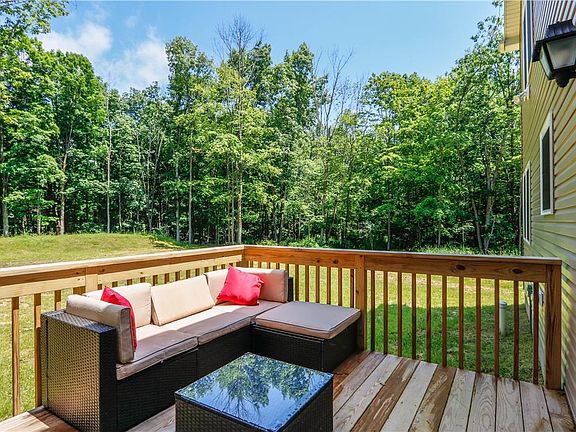 Like NEW 2100+ sq ft modern 4 bedroom Colonial home only 3 years old on over 1+ acres! The two story foyer welcomes you to a bright, OPEN CONCEPT living area with stone propane fireplace, white kitchen with gas cooking, ALL appliances included, large ISLAND seating, along with large dining and bonus/rec areas. Sliding doors lead out to the deck overlooking your private huge backyard perfect for entertaining. Upstairs features 4 great sized bedrooms including a Spacious Master Suite with high CATHEDRAL ceilings, walk-in closet and EN-SUITE bath with soaker tub. NO HOA dues, 2 car attached garage, Central AC and forced air heat, and very convenient location, just 10 mins to RT 80, shops, restaurants and more!
