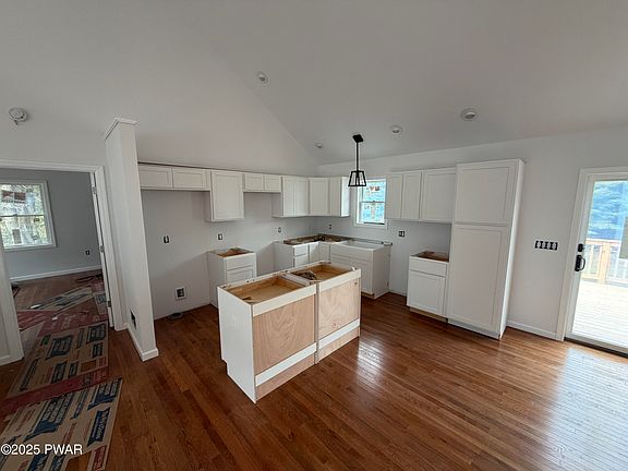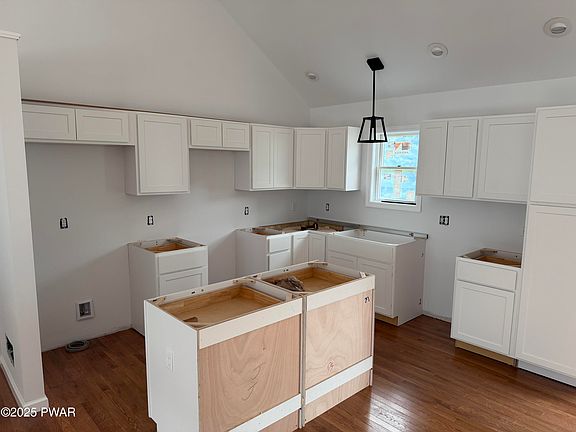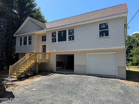 *Updated Progress Photos* This To Be Built New Construction two-story home sits on a serene 1.41-acre wooded lot in Pocono Mountain Water Forest, just 10 minutes from historic downtown Milford, PA, and 5 minutes from shopping in Dingmans Ferry. Offering a bright, open-concept living room, dining room, and kitchen living space. The home includes three bedrooms and three full baths, with a primary bedroom featuring a beautifully tiled walk-in shower. Hardwood floors flow throughout the main level, with recessed lighting and a spacious kitchen with granite countertops, a central island, modern appliances, and ample cabinetry. The dining area opens to an inviting back deck overlooking a spacious backyard, perfect for outdoor entertaining. The finished lower level provides versatile bonus space, direct garage access, a separate side entrance, a cozy pellet stove, and a utility room with washer and dryer. Additional features include Andersen windows, propane-fired forced-air HVAC, durable vinyl siding, a two-car attached garage. Community amenities include a pool, tennis and basketball courts, playground, clubhouse, and scenic beach access, blending comfort and recreation in beautiful Northeast PA. HOA fees and community details available upon request.The home is currently being built and to be finished.
