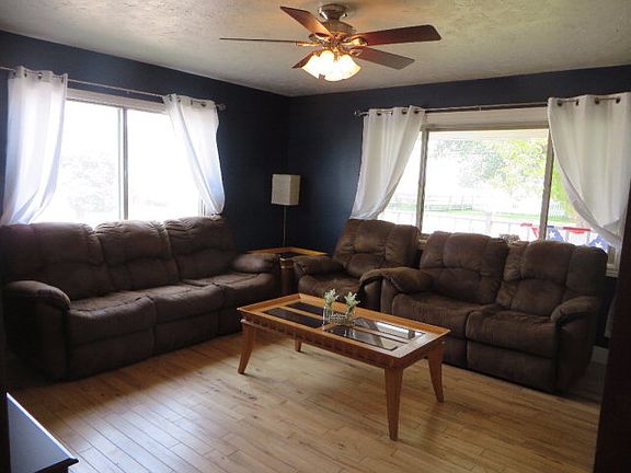 This adorable home is just the right size to save you time from extra housework. The single story home features three bedrooms and 1 bath. The bathroom and kitchen have recently been remodeled and the new stainless steel appliances are included. The home has a covered patio and sits on one acre with established lawn and trees as well as raised garden beds. There is a large 30x40 shop, 20x20 wood shed, dog run and RV parking.