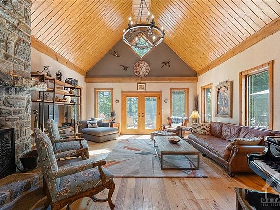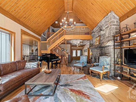 Stunning 4-season home nestled amongst mature trees located on the highly sought-after Big Rideau Lake. Perfectly situated on 2.65 acres with 600' of waterfront. The bay offers good calm water for boating and fishing, with your very own private nature reserve. Enjoy dazzling sunrises from the wrap around deck w/unobstructed views. Fabulous kitchen w/plenty of counter/cabinetry space, large dining, open concept living w/ hickory floors, and 2 storey soaring ceilings, and 60' stone fireplace spanning 3 levels. Main floor Master retreat w/ fireplace, walk-in, and spa like ensuite. A loft-like staircase to the 2nd level w/3 large guest beds & updated main bath. Finished lower-level w/propane Stove, family room, full bath, and games area, the perfect spot for entertaining family and friends. Walkout access to the outdoor swim spa, deck, & patio. Two-level 30'x60' heated garage/workshop, 150amp service, heated & insulated. Many updates, improvements, & inclusions, complete list available.
