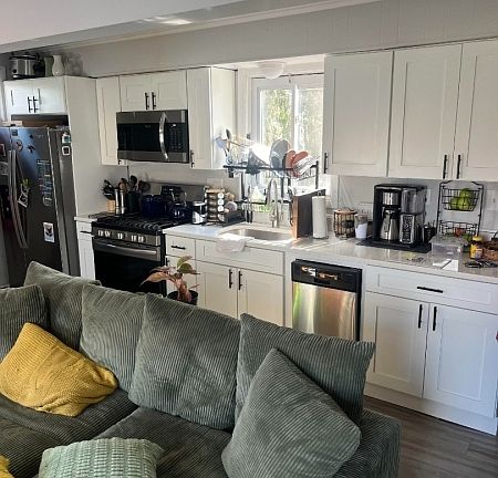 Welcome home to this 2 bedroom 1 bathroom 2nd floor apartment. Comfortably greet your guests into the main living area. The living is a bright and comfortable space with large windows, perfect for entertaining or relaxation. The living room flows into the kitchen offering custom cabinetry, new appliances and ample counter space to craft all of your home cooked meals. Down the hall you'll discover the primary bedroom offering a good sized closet. An additional bedroom currently being utilized as a home office and full bathroom equipped with tub shower and storage vanity complete the unit. Use of large backyard and pets are welcome conditionally. Rent includes lawn maintenance, water and 2 parking spaces.
