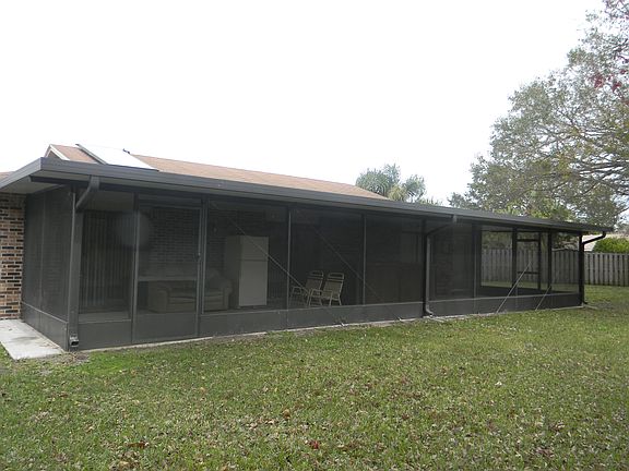 Location! Location! Location! Come and see this adorable 3 bedroom 2 bath home in Clements Wood sub-division in West Melbourne. This home offers 1445 sq. ft. of living space, close to Mall, shops, restaurants & I-95. You name it you will be close to it. Very nice Community with a park area you will enjoy! Open floor plan. Enjoy being home at all times, day or night creating a feast in the lovely kitchen when entertaining family and guests, complete with all appliances. Energy Saving Solar system for hot water heater. Wired for security cameras. Storage will never be an issue with bedrooms boasting nice size closets. Master bedroom has a large walk in closet. Spend evenings relaxing or your days entertaining your guests with a barbecue during the day or even at night in the comfort of the large screened in porch 12 x 46, with a bar area in it for better entertainment.Awesome breeze when you open the doors with the screened entry porch and rear porch to enjoy your Florida experience. Privacy fence, undeveloped woodland area adjacent to the back yard, over sized lot, park your boat in the yard through the boat gate, heavy insulated garage door, work bench and storage in garage. New tamper resistant wall outlets and switches, new carpet, also wired alarm system. Fenced yard. Resent remodel. Freshly painted. Outside shed for storage.