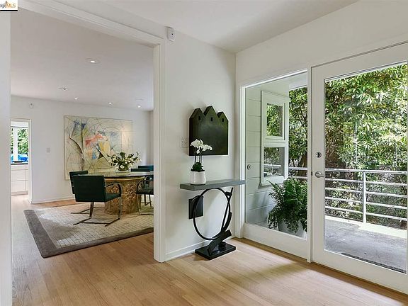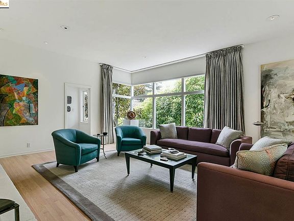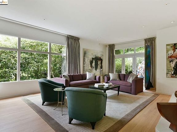 Owned by same family for over 50 years, this Mid-Century Modern has stellar views and overlooks the beautiful John Hinkel Park. Situated on a special block in the Thousand Oaks area with other architecturally significant mid-century residences, every corner of this home offers ultimate privacy with landscaped hedges, established magnolias and dramatic unobstructed views of the Bay, San Francisco skyline, Mount Tamalpais and the Bay Bridge. A lower level office has walls of bookcases, views and possible in-law/au pair development. A stair from the living room leads to an amazing upstairs room with more built-in bookcases and a stunning view deck.
