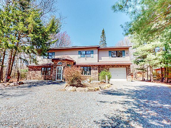 TOWAMENSING TRAILS STATELY COLONIAL HOME Expanded & Newly Renovated 4BR 3 Full Bath Brick Colonial Home Features Ultra Modern Eat-In Premium Granite Kitchen, Large Accommodating Living Room w/ Easy Maintenance WOOD PLANK PORCELAIN TILE Floors Throughout, High Ceilings & Ample Skylights for Ample Natural Lighting Plus Capacious MASTER SUITE w/ Impressive Black Marble Floor-to-Ceiling Gas Fireplace, Private Balcony Overlooking Tranquil Back Woods & Spacious Renovated MASTER BATH SUITE w/ New Dual Granite Vanity, Deep Soaking Tub w/ Oversized Subway Tile w/ Spa Vibes Plus His & Her Closets! 3 Additional Generous Sized Bedrooms w/ 3rd Full Main Bath! Attic Fully Insulated & Quality Construction w/ 2x6 Lumber Plus New Windows Throughout! Situated in Non-Gated STR-Friendly Lake Community! Enjoy the Flat, Spacious Back Yard Overlooking the Woods! Oversized Garage Could Transform into Recreational Game Room Area! No Crawl Space, but Slab Foundation w/ Utilities in the Garage Closet Area! LOW TAXES Only $3,761/Year & Super Low Dues! Close to All Major Pocono Mountains Attractions All Seasons! Call Today for Your Private Showing!