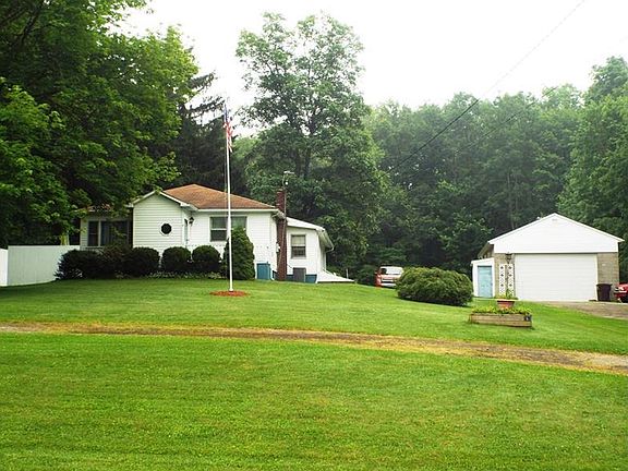 Ranch in a Country Setting! Starter or retirement home on an acre in Slippery Rock School District. Detached 24x40 garage with second floor. 28x20 family room addition with cathedral ceiling, sky lights, and pellet stove. Front and side porches, large rear deck with privacy fencing. Level yard has mature pine and hardwood trees, children's playhouse, fire pit area, and horseshoe pits. Driveway to detached garage is partially paved while additional governor's driveway in front provides easy access to property. Convenient to Route 422 and Interstate 79.