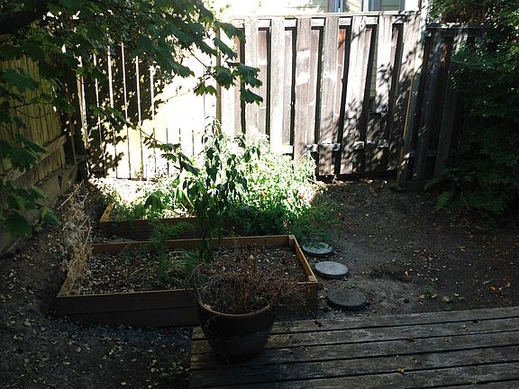 The back yard has a small deck off of the sliding door and places to plant vegetables if you wish! The home gets lots of natural light and the floor plan lives nicely.
