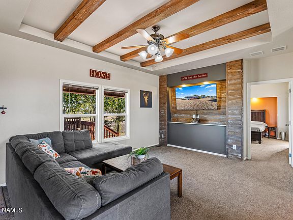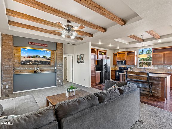 Welcome to your dream retreat! This stunning 3-bed, 2-bath home, built in 2018, invites you to experience modern comfort and spacious living. As you step inside, you'll be greeted by an open floor plan-perfect for entertaining friends and family. The home features a large kitchen with kitchen island, separate laundry room, and updated ensuite bath with dual sinks, a walk-in shower, and a luxurious soaking tub. Set on an expansive 2.4-acre lot, this property is adorned with trees and plenty of room to roam. Enjoy outdoor living on not 1, but 2 charming decks-ideal for entertaining or simply soaking in the starry night sky. Completing the property is a detached oversized garage and a fully fenced dog run. The home is on haul water and combines modern amenities with serene country living.