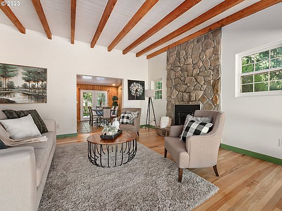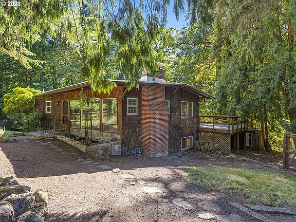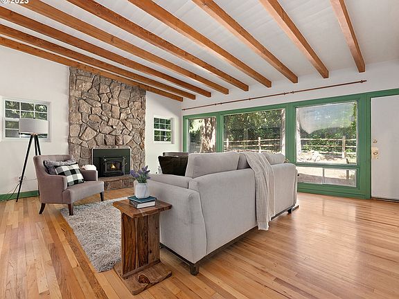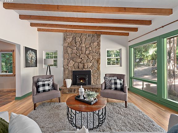 Dreams of living in a nature park or starting an urban farm? This sweet & secluded property is for you! Whether you're a camper, glamper, or somewhere in between, you'll love the retro vibes + modern amenities of this chic vintage ranch. Nestled in the trees on close to 1/2 acre that adjoins protected greenspace, feel as if you are worlds away, yet under 10 minutes to shops, restaurants, and the farmers market. With clean lines and a functional floor plan, this charming abode is simply designed, yet far from ordinary. An open living room with vaulted, exposed beam ceiling, picture window, & striking stone fireplace serves as the heart of the home, with each adjacent space offering a unique vista of the surrounding natural landscape. A finished lower level provides flexibility for multi-generational living, housemates, media room, office, or rental. Two large decks (one covered), plus an outdoor fireplace and built-in barbecue make open-air entertaining possible throughout the year. Plenty of room for gardening, beloved furry friends, chickens, or whatever brings you joy! Recent improvements include newer kitchen appliances, many updated systems, and seismic retrofit. Moments to Leach Botanical Gardens, Powell Butte Nature Park & Springwater Corridor Trail. Offer deadline: Thurs. 7/20 at 10am. [Home Energy Score = 5. HES Report at https://rpt.greenbuildingregistry.com/hes/OR10137239]