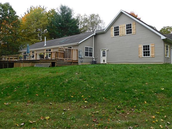 Over 10 beautiful, private, wooded rolling acres w/1 acre area fenced in for pets. 3 Bdrms, 2 full baths & a partially finished full w/o bsmt which is plumbed for a 3rd full bath. The Master suite has a large walk-in closet, full bath w/dbl sink vanity, & sliders out to the beautiful 46' deck overlooking a spectacular view of the woods. Large open kitchen . It boasts a lovely stone gas FP, neutral colors throughout (carpeting, paint & ceramic tile). It features Carrier mechanicals w/90% furnace, paved driveway, doubled paned tilt out windows, 200AMP elec. & a separate 100AMP service in the extremely large 3 car heated att garage w/add 14x24 partially finished upstairs. There is also a 16x24 pole barn w/concrete & 110 v elec.