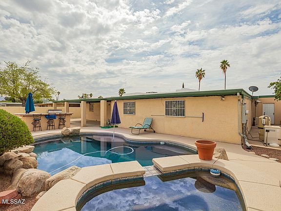 Beautifully maintained 1,940 sq ft, 3-bedroom home in East Tucson! Filled with natural light, this home features neutral paint, tile flooring, and wood-look floors in the bedrooms. The inviting living room boasts a cozy fireplace, while a large family room with French doors opens to your backyard paradise. The kitchen is equipped with built-in appliances, a tile backsplash, track lighting, and sleek cabinetry, plus a breakfast bar that flows into a charming dining area. Well-sized bedrooms and A spacious bonus room offers endless possibilities--perfect for a home gym, game room, or hobby space. Plus, you'll love the convenience of a large laundry room and a workshop/storage room. he true highlight is the stunning entertainer's backyard! Enjoy a covered patio, lush green lawn, and a built-in BBQ with a stylish seating barideal for hosting gatherings. Cool off in the sparkling pool, soak in the relaxing spa, or simply unwind and take in the Arizona sunsets. This home has it allschedule a showing today!