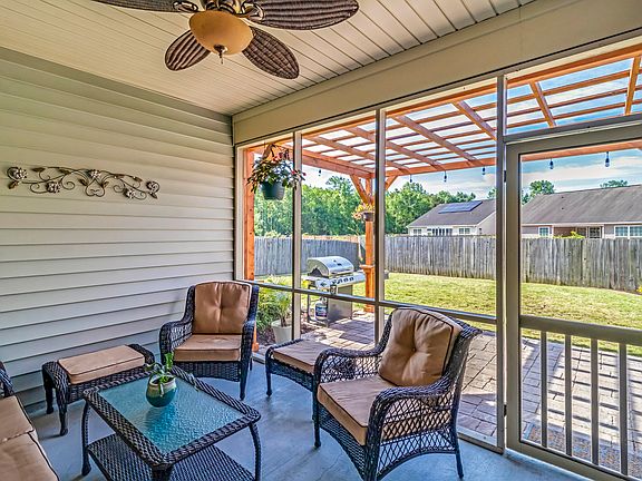Nestled on a beautifully landscaped lot in the desirable Brookdale neighborhood sits this charming upgraded home that is conveniently located near the Charleston Airport, Boeing, Volvo, BOSCH, the Charleston Air Force Base and more! The open floor plan features brand new hardwood floors throughout the main living area and master, and includes everything on one level with the exception of a bedroom situated over the two-car garage. This space offers a large closet and could serve as a guest area, a media room, an office, or a playroom. One of the main highlights of this home is the extensive outdoor living space which includes a rear screened-in porch, a stone patio covered by a beautiful pergola, a fire pit, a garden, and a spacious fenced-in backyard. There is also additional side yard that is the perfect place to store a boat! Inside, a welcoming foyer opens into a large family room with a vaulted ceiling that flows seamlessly into a dining area and kitchen boosting stainless-steel appliances. Relax and unwind in the huge master suite featuring a tray ceiling, a walk-in closet, and a private bath with a double sink vanity, a soaking tub and a separate shower. To allow privacy for the master, two generous sized bedrooms are located towards the front of the home off a hall, and share a full bath. The two-car garage has an additional closet for storage, built-ins, and even a bar! Don't miss the chance to own this wonderful home that is conveniently located near shopping, dining and area schools. A $1200 Lender Credit is available and will be applied towards the buyer's closing costs and pre-paids if the buyer chooses to use the seller's preferred lender. This credit is in addition to any negotiated seller concessions.