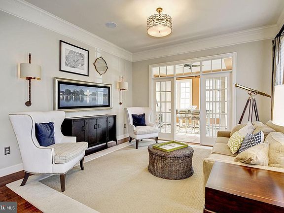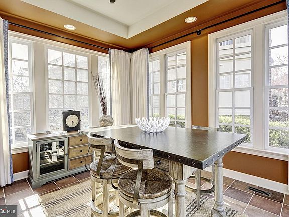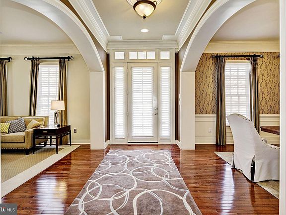 Stunning former model home located in the coveted Maple Lawns community of Fulton. Close proximity to neighborhood private gym and pool. Beautiful archways, gleaming hardwood floors, decorative molding and a designer color palette greet you in the grand foyer. Formal living and dining rooms appointed with crown molding, chair railing, wainscoting, and a wood burning fireplace set in marble. Bright and airy sun room boasting a tray ceiling, ceramic tile and custom drapes. Gourmet kitchen highlights granite counters, an oversized center island with breakfast bar and prep sink, 42" cabinetry, top of the line appliances, subzero refrigerator, Thermador professional gas cooktop, dual Dacor convection wall ovens and built in microwave, butler's pantry, and a casual dining area with patio access. Opulent family room showcasing a breathtaking coffered ceiling, gas fireplace and first floor sound system. Master suite enhanced with a soaring tray ceiling, architectural columns, dual walk-in closets and vanity area. Luxurious master bath boasts separate vanities, jetted soaking tub, and a glass enclosed shower with seating. Fantastic third level suite includes a spacious bedroom, full bath and sitting room/additional bedroom. Fully finished lower level offers an opulent recreation room with built-in wet bar highlighting stone surround, movie theater with built in projection and 10 speaker system, a fifth bedroom, full bath, and den. Back porch and private slate patio complete with built in seating. Four car heated and cooled garage with customized double lift. Updates include: garage lift, built in whole house humidifier, designer light fixtures, 7 zoned speakers, ceiling fans, wainscoting, millwork, blinds, carpet, internet lighting and more!