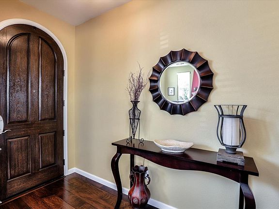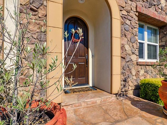 This home is elegant, starting with the beautiful arched stone entry to the porte-cochare. The formal living room serves as a warm home office with lots of windows. Across the hall is the downstairs bedroom suite, welcoming in-laws & guests. Further down the hall you'll find the perfect spot for a grand piano or music room! Not a musician? This can be a fabulous formal dining room or a niche for a reading room. The back of the home opens to a fabulous great room with an expansive kitchen, eat in breakfast bar, perfectly designed family room, large dining area adjacent to lovely outdoor dining/sitting area off the porte-cochare. This is an amazing space for a family to enjoy with room for everyone! Upstairs features an open loft family room. All bedrooms are large with plenty of closet space. Master bed & bath are an elegant retreat with a Juliet balcony allowing cool breezes and sunshine.The gardens includes peach, cherry, plum, pomegranate, apricot, & lime trees, a BBQ kitchen & patio