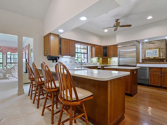 TOP-OF-LINE CUSTOM HOME W/ 100 FT ON GOLF COURSE IN EXCLUSIVE FAIRWAY ESTATES. 4 BEDROOMS AND 3+ BATHS. HIGH CEILINGS AND OPEN FLOOR PLAN WITH LOTS OF ARCHED WINDOWS TO ENJOY GORGEOUS GOLF COURSE VIEWS. OPEN KITCHEN W/ GRANITE COUNTERS & WOOD FLOORING & SIT DOWN PASS THROUGH WINDOW TO GREAT ROOM. FORMAL AND INFORMAL DINING; SPLIT BEDROOM PLAN. HUGE MASTER ENSUITE (on golf course) WITH GIGIANTIC MASTER BATH LIKE 2 BATHS W/ WHIRLPOOL TUB, VANITY, MAKE-UP AREA, & WALK--IN CLOSET ON ONE SIDE AND THE OTHER SIDE HAS VANITY, SHOWER, AND WALK-IN CLOSET. FORMAL & INFORMAL DINING; SPLIT BEDROOM DESIGN; SURROUND SOUND; SECURITY SYS;SUNROOM OVERLOOKING GOLF COURSE AND LARGE DECK. TRIPLE CAR GARAGE THAT INCLUDES WALK-IN ATTIC. BEAUTIFULLY LANDSCAPED YARD THAT IS 200 FT DEEP.