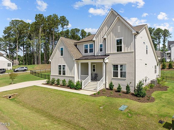 Better than new Hasentree home offers a first floor primary AND first floor guest bedroom with private bath. Inviting front porch, wide entry foyer and 8 foot doors on main level. The family room offers a linear fireplace flanked by cabinets and a trey ceiling. The open concept floor plan is grounded by a gorgeous kitchen highlighted by center island, quartz countertops, gas cooktop, wall oven and large walk in pantry. The primary retreat has access to the rear covered porch and a lux bath w/HUGE shower, free standing tub and large WIC. Three spacious bedrooms w/WICs and a bonus room perfect for a work/play space complete the second floor. Enjoy outdoor entertaining by the firepit or under one of the two covered patios. THREE car garage. Fenced rear yard.