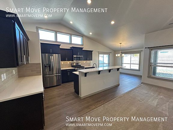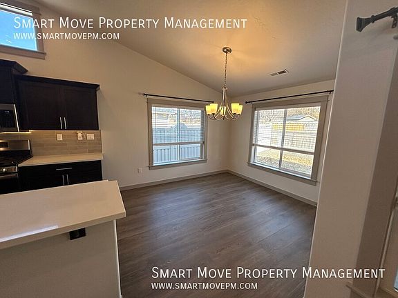 Nestled on a peaceful no through street, this charming single-story home, built in 2021, sits on a corner lot with no backyard neighbors. 3 bedrooms plus an office! The great room boasts vaulted ceilings, a spacious living area, quartz countertops, a gas range, a large pantry, and a dining area. The master suite includes an attached bath with dual vanities and a generous walk-in closet. A roomy office with glass double doors offers a quiet workspace. Additional features include a two-car garage with 220 volt outlet and a laundry room with a utility sink (washer and dryer are included for convenience). , Fully fenced backyard with a covered patio perfect for relaxing and entertaining. TERMS: Rent: $2295 Security Deposit Refundable OAC: $2295 Leasing Administrative Charge: $150 Lease Term: 12 months Application Processing: $45 per adult Pets: Max 2 pets negotiable. Pets under one year of age will not be considered. Pet Rent: TBD ($35-$45 per pet/mo) Pet Acceptance Charge: TBD Utilities Paid By Tenant: All utilities Lawn maintenance: Tenant responsibility Roommates: Not accepted Renters Insurance required Resident Benefits Package required with ALL lease agreements under Smart Move Property Management. The $35 monthly bundle includes: Renters Insurance - $20k personal content plus $100k liability, Credit Reporting for Rent Payments, Pest Control, Furnace Filter Home Delivery, Bi-Annual Repairman Visit, 24/7 Emergency Live Answer call line, Resident Portal. Schools (subject to verification by applicant): Silver Sage Elementary, Lake Hazel Middle School, Mountain View High School Property listing information is deemed reliable but not guaranteed. Applicant is to verify all information.