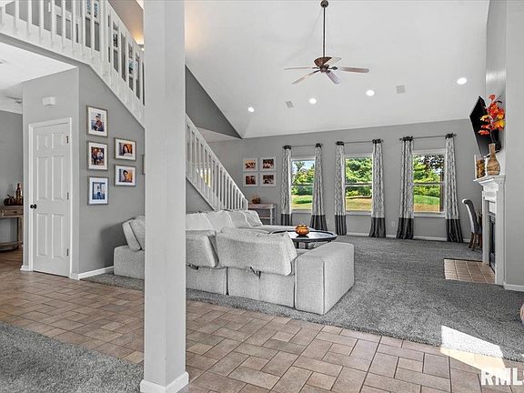 Striking curb appeal sets the scene for this meticulously updated 2-story in Piper Glen, where soaring ceilings, golf course views & modern finishes meet a standout floor plan delivering both function & style. The bright & inviting tiled foyer opens to a formal dining room framed by an elegant pillar while accenting wide open, main-level living. Discover a large sunroom with walls of windows, a modern half bath for guests & large, convenient main floor laundry. A spacious eat-in kitchen w/2-toned cabinetry, tile floors & backsplash, stainless appliances, & bar seating sits beautifully in the heart of the home & stands to provide seamless entertaining arrangements. Upstairs you'll find the primary suite & it's en suite deluxe full bathroom plus 2 more BR's & their shared, equally attractive full bath. The finished basement takes this home to the next level with in-home theatre (or other recreational space), 3 more true bedrooms (each egress equipped), another full bath & plenty of flexible, already finished square footage offers endless potential to meet individual needs. This fantastic 6BR home sits pretty, perfectly nestled at the end of a quiet, golf-cart community street with zero through traffic. In addition to having no backyard neighbors, this one of a kind lot also steps directly onto the Sangamon Valley Trail leaving you with an unbeatable location, layout & lifestyle that's sure to align perfectly in Piper Glen subdivision!