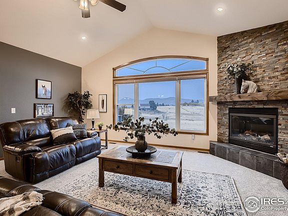 Stunning mountain and meadow vistas are a daily reminder of the splendor and beauty of living in Colorado. This sprawling ranch home is located in the exclusive Buckhorn Glade subdivision just a few minutes west of Mariana Butte and Devil's Backbone. With 2.34 acres, an expansive deck and covered porch, you will enjoy privacy and breathtaking views in every direction. Step inside and be delighted by a stone fireplace in the massive living room, a luxury kitchen with stainless appliances, and a dining room large enough for all the holiday gatherings. The primary suite offers ultimate privacy on one side of the home with a double-sided fireplace, access to the deck and a luxurious spa retreat. Imagine yourself soaking in the free-standing tub in front of the fire on a quiet Colorado evening. Two guest bedrooms and an executive office (or 4th bedroom) complete the other side of this beautiful home. Explore the possibilities of the full, unfinished basement and the oversized attached garage. Professional landscaping plans including an expanded patio with gas grill, firepit, greenhouse and waterwise, native plants are yours for the asking.