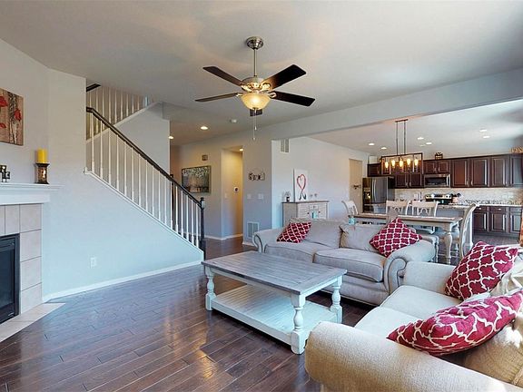 Gorgeous Hemingway model in the heart of Cobblestone Ranch. This beautiful home features 5 bedrooms, 4 baths, 3 car garage, finished basement, & 3535 FSF. Beautiful kitchen with upgraded slab granite, spacious center island with room for bar-stools, single basin stainless sink, stainless steel appliances, large pantry, and lots of lighting. Gleaming hardwoods throughout main level, fireplace with tile surround in family room and large windows that let in lots of light. Main level also offers a flex space with french doors. The upper level features a spacious master suite with coffered ceiling, master en suite 5 piece bathroom & large walk in closet, 3 secondary bedrooms, full bath, laundry room & sizable loft. Finished basement offers additional living space w/5th bedroom, 3/4 bathroom & unfinished storage space. Situated on large .18 acre lot with spacious backyard, stamped concrete patio and fence. Home backs to a nice greenbelt/walking path that traverses the neighborhood.