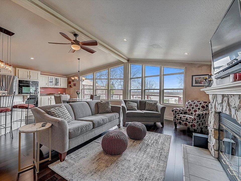 Time to sit back and enjoy Lake living in this exceptionally well maintained beautiful home. Enjoy the lake views from both main and lower levels. Main level open concept great room with a dream kitchen. Completing the main floor are three bedrooms with outstanding Master En Suite with heated floors, Bluetooth his & her mirrors, dual Kohler shower heads with additional large soaking tub. Entertainment galore as you enter the lower level and enjoy a full back lit bar and exit the brand new sliding door to your poured patio with a Hot tub. Lower level also has three additional bedrooms with plenty of storage and full bathroom. Stroll past breathtaking gardens while soaking in your lake views on your way to what you're here for , your Wind Lake life experience!