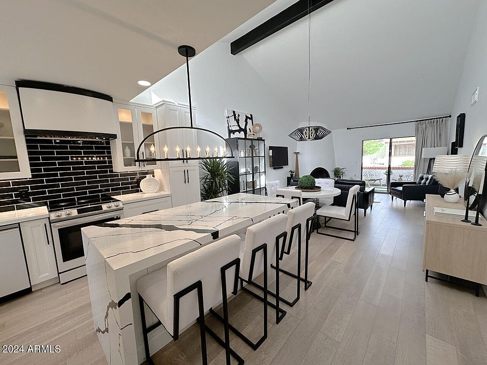 Ultimate designer patio home in perfect Scottsdale location! Reimagined from the ground up. This gorgeous 2 bed, 2 bath home offers soaring ceilings with fireplace and designer touches throughout. New custom kitchen w/large waterfall island, sleek glass appliances, custom range hood. Beautiful floors thru-out this single story w/ modern muted glass interior doors and custom shutters. Roomy resort style primary en-suite offers spa like bath w/ walk-in closet. Spa-styled guest bath. Can purchase fully furnished! Two outdoor patios. Steps from relaxing community pool and spa. 2-car garage w/ epoxy floors. Walk to grocer, Starbucks, greenbelt, canal, Chaparral park. Perfectly located, mins from Fashion Square and Scottsdale's best restaurants. Here's your chance to make this yours. Perfect Location.