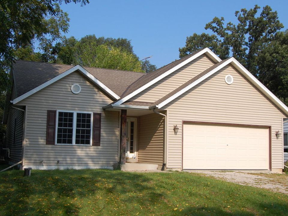 Steps away from the beach at Bohners' Lake, this split floor plan ranch offers its' new buyer 3+ bedrooms, 3 bathrooms, and a finished lower level. The open concept main floor has a great room with gas fireplace, vaulted ceilings thats' open to the kitchen with sliding doors to a deck in the fenced in yard. Master bedroom en-suite boasts a walk in closet and most floors are HW. The lower level has a large TV room, with a bedroom, and huge bathroom and 12x10 walk in closet. Workout room in LL too!