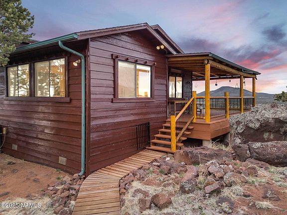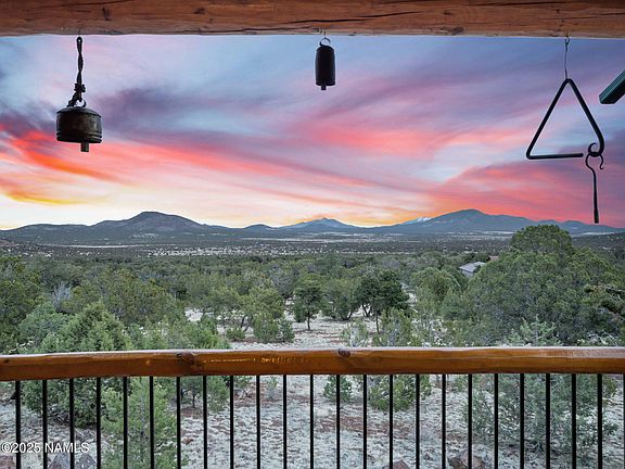 Located in a pocket of luxury properties just north of Williams, this property offers sweeping panoramic views that reach as far as the North Rim of the Grand Canyon, with commanding vistas of the San Francisco Peaks and unspoiled natural beauty from every window. Golden Eagles add to the majestic landscape and are known to nest nearby and frequent the skies. This bright, spacious split floor plan features a large great room, multiple French doors for seamless indoor-outdoor living, and a warm, inviting space for entertaining. Remodeled in 2024 and a freshly painted exterior, the home has been meticulously maintainedincluding removal of dead tree limbs for a clean, well-kept landscape. Enjoy sunrise views from the front deck and