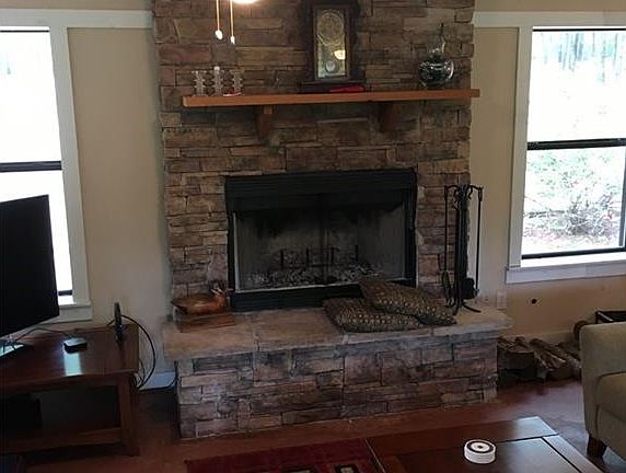 Great 5 acres that joins Corps. land at Washita Point. Has pipe fencing & elect. gate & 2 ponds. Home 2011 sq. ft. & guest house has 465 sq. ft. Home has master bed & bath, bunk room has 1/2 bath. Open living/kitchen with fireplace. Decks wrap around home