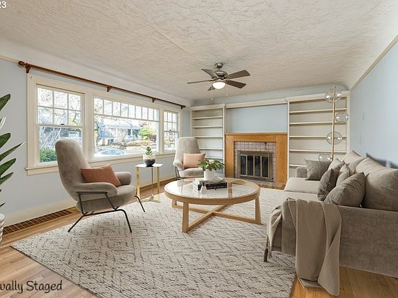 - Features: Bookcases, Ceiling Fan, Fireplace, Hardwood Floors