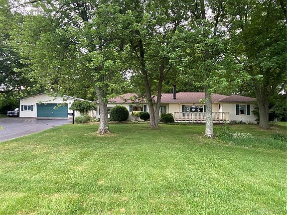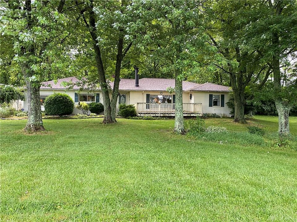 Unique! Sprawling ranch is tucked away on the beautiful 1+ acre lot dotted with mature trees. Over 2100 sq.ft on partial basement, this home has spacious rooms, loads of closets and pretty hardwood floors. Living room features beamed ceilings, buck stove and large picture window. Large kitchen w/all appliances, lots of cabinets and nearby formal dining room. French doors lead to office/family room flanked with built in bookcases. Main floor utility room and walk in pantry. Three good size bedrooms plus 2.5 baths! 40x30 Metal Pole barn w/concrete floor. Large asphalt parking pad. Front and rear deck and charming paver path leads to the front door. Private setting with no rear neighbors. New roof 2016. New sump pump and water heater. 200 amp electric box. Update this home and make this your dream home! Selling "as is" to settle estate.