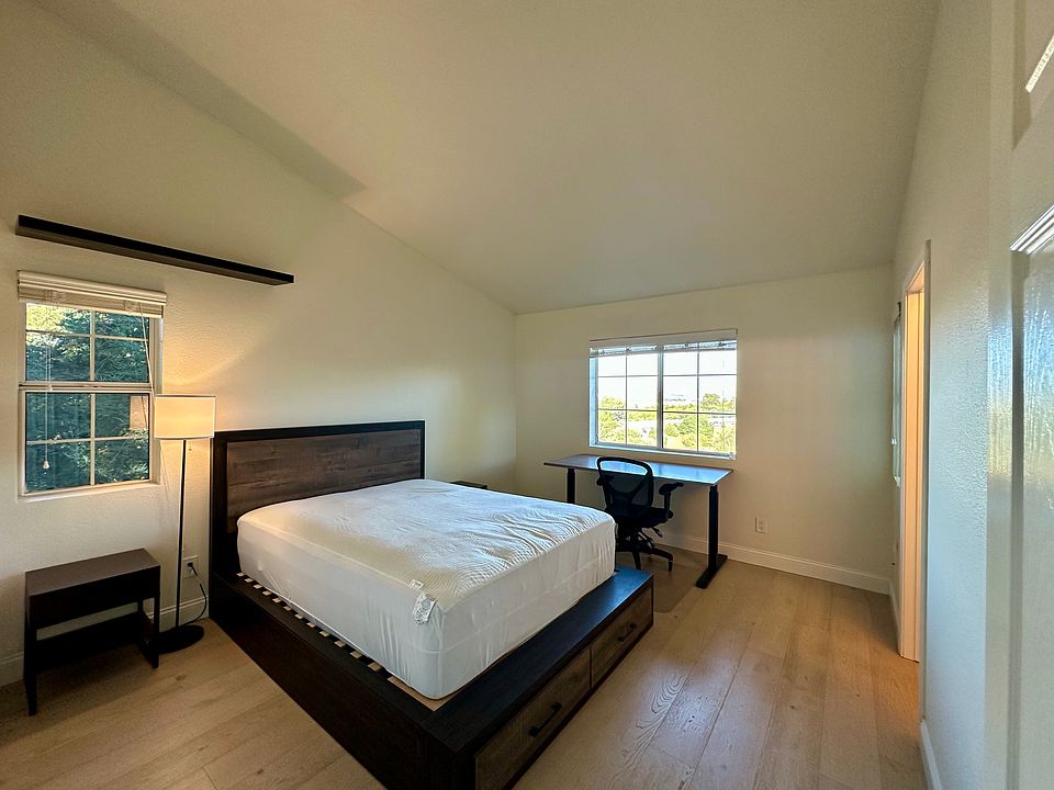 Master bedroom with private bathroom and walk in closet located in Canyon Meadow. The room is furnished with a queen bed, 2 side tables, desk, office chair, and dresser. The unit has a washer and drier inside. The complex has luxurious amenities such as 2 pools, jacuzzi, gym, basketball court, volleyball court, tennis court, clubhouse, and sauna. The unit is accessible to 680 and 580 freeway. About 5min drive to west Dublin bart station. Close to many grocery stores, shopping mall, gym, and parks. Refer to lease agreement