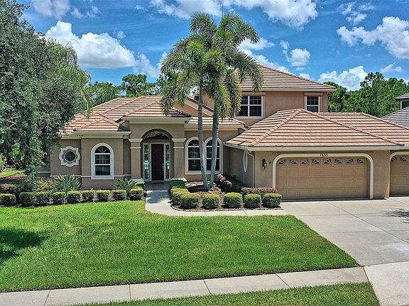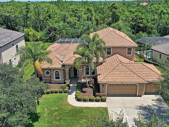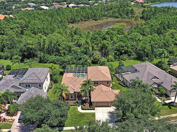 Serene privacy envelops this outstanding residence, establishing a tranquil nature preserve setting on a nearly half-acre homesite with a side pond view. The Todd Johnston Weldon III-designed home optimizes an illustrious leisure lifestyle that appreciates one's love for the outdoors. The grand flowing floorplan is accentuated with stunning finishes and creates inviting spaces for entertaining as well as grants areas of solitude for working or retreat where the entire family can claim individual domains. Upon entering the welcoming foyer, you are greeted by the open living and dining rooms with a lovely gas fireplace that are ideal for formal gatherings while providing effortless transition onto the lanai and into the magnificent kitchen. Graced with granite countertops and an adjacent separate walk-in pantry with a desk area, the gourmet kitchen is a wonderful stage for the iron chef to perform, turning any event into a special occasion. The kitchen overlooks the spacious family room that is picture-perfect for holidays. With versatility in mind, all your family's needs are met with a den featuring a Murphy bed that could easily be a fifth bedroom and a large upstairs bonus room with a built-in media center and desk for a robust office and/or game room. The master wing on the first floor is split from the rest of the rooms for blissful solitude, boasting a spa-like en-suite bath, large walk-in custom closet, and doors to the lanai. You, your family and guests will find themselves drawn to the lanai, swimming in the heated pool and spa with a new heater and updated PebbleTec and tile, and cabana-style open patio for lounging. Hurricane shutters offer peace of mind. This remarkable residence exceeds expectations for quality living. River Club is an esteemed neighborhood with an 18-hole championship golf course and dining while enjoying the beauty of Florida living. Lakewood Ranch and the beaches of Bradenton and Sarasota are all nearby.