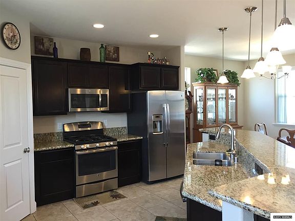 Beautiful Golden Highlands home barely lived in. Loaded with upgrades including granite slab counter tops, lovely dark finish cabinetry, spacious master bedroom suite located on the main level with dual vanities, shower stall, garden tub and walk in closet. Open kitchen with center island, breakfast bar, pantry and tons of counter and cabinet space. Enjoy the amazing Northern Nevada sunsets from the back yard with unobstructed views. 18 inch tile flooring and two-tone interior paint finish this home.