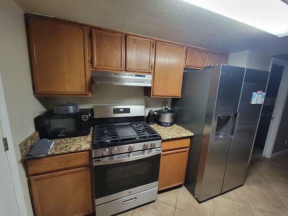 Realtor friendly. Welcome to this amazing 3 bedroom, 2 bath home located in West El Paso. This beautiful home features refrigerated A/C. The kitchen has stainless steel appliances. The stove has a griddle and the refrigerator has an ice and water dispenser. The kitchen also has granite countertops, and a pantry. Two bedrooms have carpet, while the rest of the house has ceramic flooring. The double car garage provides ample parking and storage space and easy access with the garage door opener.