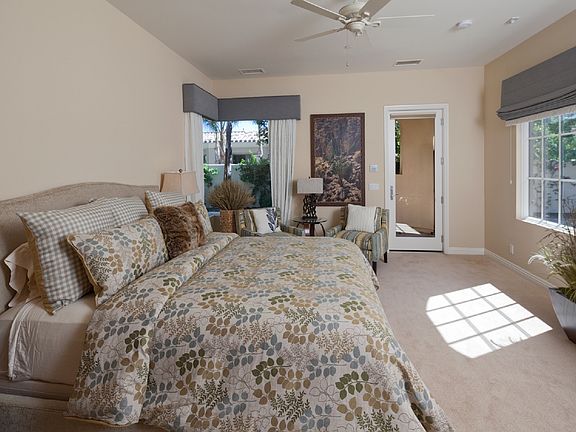 The well appointed property has 3BD/ 3.5 BA with approximate 2590 Sq. Ft. and spectacular views of golf course, lake, and mountains. As you enter the private courtyard with fountain and beautiful landscaped garden, you feel instantly enveloped. The home has been professionally decorated with thoughtful attention to detail. The Great Room includes: A fully equipped chef's kitchen, dining area, living room with fireplace and wet bar. The grand master suite boasts views, large walk- in closets, huge bathroom with spa tub and separate shower. All bedrooms have private baths, king-size beds, flat - screen TV's, custom window coverings, ceiling fans, and large closets. There is one suite bedroom with a private entrance. A separate laundry room with expansive storage, and office fully wired, a two-car garage with added golf cart space completes the desert life style. Step outside to a custom designed pool/spa complete with built- in BBQ. An entertainers dream. Available January 1st 2016, $ 7,500/ month, $ 5,000 security deposit minimum 3 months rental. owner pay for trash , water, internet services