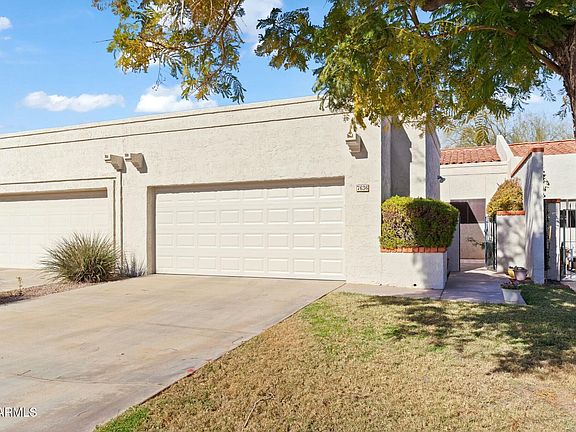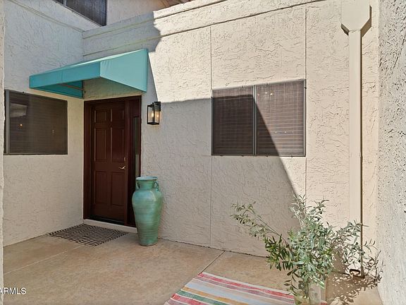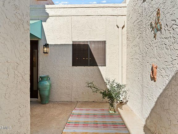 In the heart of Scottsdale. This inviting patio home is just right with 2 car garage, 3 beds, 2 baths. 2 bedrooms on the main level. Upper level has a private primary suite and balcony for beautiful sunsets. Remodeled kitchen with newer cabinets, quartz counters, backsplash, farm sink, stainless steel appliances. Beautifully engineered wood flooring in the spacious bright great room w/ soaring ceilings and fireplace. You have plenty of private outdoor spaces with the gated courtyard and a good-sized covered patio. 2 car garage has epoxy floors and cabinets for storage. Steps from relaxing community pool and spa. Non-age restricted. Perfectly located, mins to Fashion Square and Scottsdale's best restaurants. Walk to grocer, Starbucks, greenbelt, canal, Chaparral Park. By appointments only.