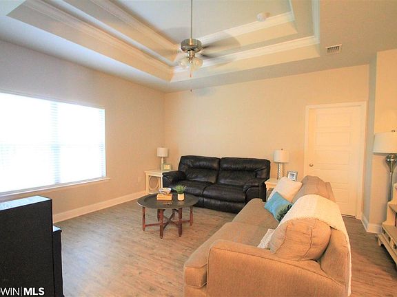 Prime location, in the quaint Caroline Woods subdivision of Daphne! This 4 bedroom / 2 bathroom Gold-Fortified Brick Home, sits on a cul-de-sac lot, with a private backyard. All interior walls have been recently painted! Luxury vinyl plank flooring in the bathrooms, large foyer/hallway, kitchen, breakfast room & living room. Master Bathroom just recently had a remodel...mosaic tile surrounds the garden tub & a new tile shower, with pebble stone flooring & a sliding glass door. Cute mud room wall added, as you come in from the garage! This home offers blinds on all windows, fans in each room, trey ceilings in the living room & master bedroom, huge pantry & so much more!! Looking for a home with NO backyard neighbors? This is it!! Located behind this home, is the wooded area of the new Daphne Sports Complex.
