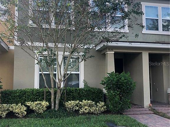 Like New and Available Now! Excellent layout features a first floor guest room or office attached to the downstairs full bathroom. Updated wood tile throughout the first floor, tall ceilings and lots of natural light. Brand new carpet in the bedrooms and upstairs. New paint throughout the interior. Lots of storage on both levels. Kitchen features a large island open to the dining and living area and is a great space to host. Features a large pantry, stainless steel appliances, 42in cabinets with crown molding and granite countertops. Living space opens to a private paved and fenced courtyard that attaches to the 2 car garage. Upstairs you will find bedrooms 3 and 4 along with the master retreat, a reading nook and loft with shelves. The master features a walk in closet, dual sinks and large shower. Washer and Dryer are provided in the large upstairs laundry room. Around the corner from the community clubhouse. Close proximity to Disney and Restaurants and Shopping. Excellent school district.