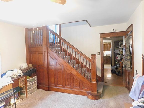 4-bedroom home located on a large lot. Natural woodwork throughout home. Hardwood floors under carpeting. Pocket doors into living room still work. Home offers eat-in kitchen, replacement windows and newer gas boiler. Attic was finished at one time and could be again to make another bedroom or playroom. One car garage has a workshop attached to back. Whole house generator. Call today!
