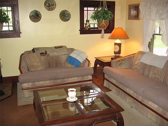 THIS IS A RARE FIND! 2 BR home on 8 1/2 acres with a pole barn (4 stalls)! The pellet stove in the livingrm keeps the home cozy in the cold winter months (pellets left to purchase), formal diningrm for entertaining family & friends, modern kitchen & bath! Hrdwd floors under carpet. Slider to backyd deck (great view)...Roof, boiler, gutters, H20 tank all newer