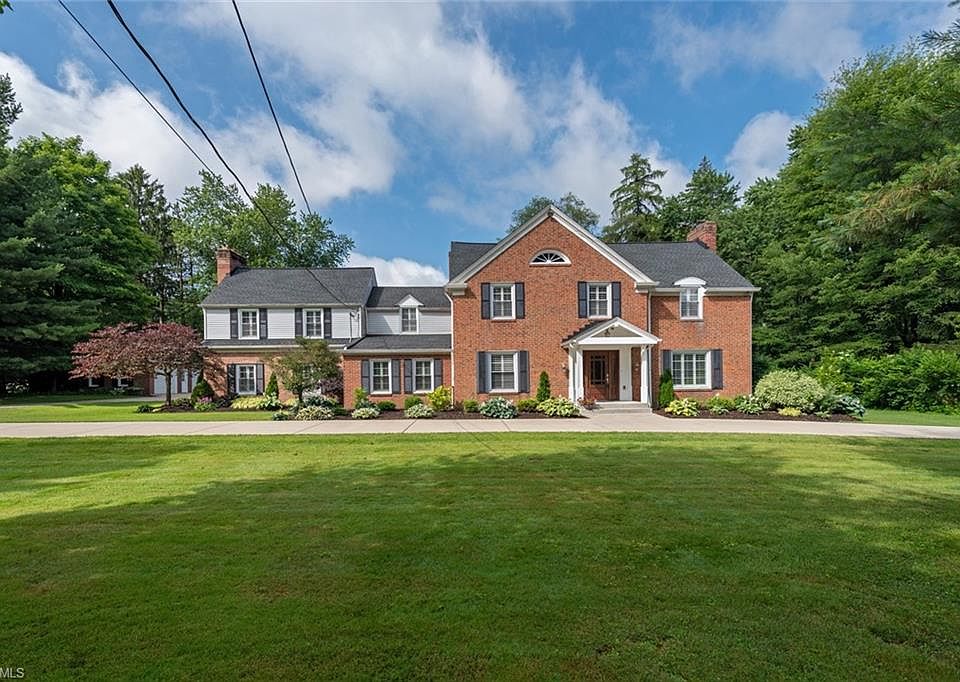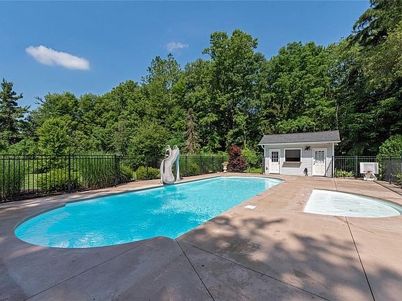 Fall in love with this immaculate colonial with a pool on 2+ acres in Chagrin Falls! This delightful home features over 4,000 square feet of living space, a gracious floorplan, and a fantastic backyard oasis. All that is missing is you. The foyer flows into a spacious living room, which features a fireplace and gleaming hardwood floors. Off of the living room, you will find the dining room with a tray ceiling. The kitchen is nicely updated with white cabinetry, stainless steel appliances, and patio access. A spacious sunroom and a large bonus room with a wine cooler complete the first floor. Upstairs, you will find four bedrooms and three full bathrooms, including the elegant master suite. Outside, you are sure to enjoy summer gatherings on the back deck that overlooks the stunning indoor pool! Recent improvements include a newer furnace, air conditioner, and water heater (2018) and a newer roof (2012). Located on Chagrin Road in Bainbridge, this home backs up to Frohring Meadows and is convenient to South Chagrin Reservation, The Tanglewood Club, and popular shopping and dining in downtown Chagrin Falls. Do not wait to visit this beautiful home!