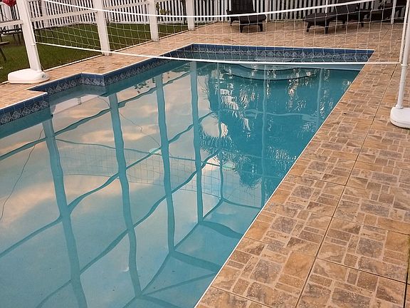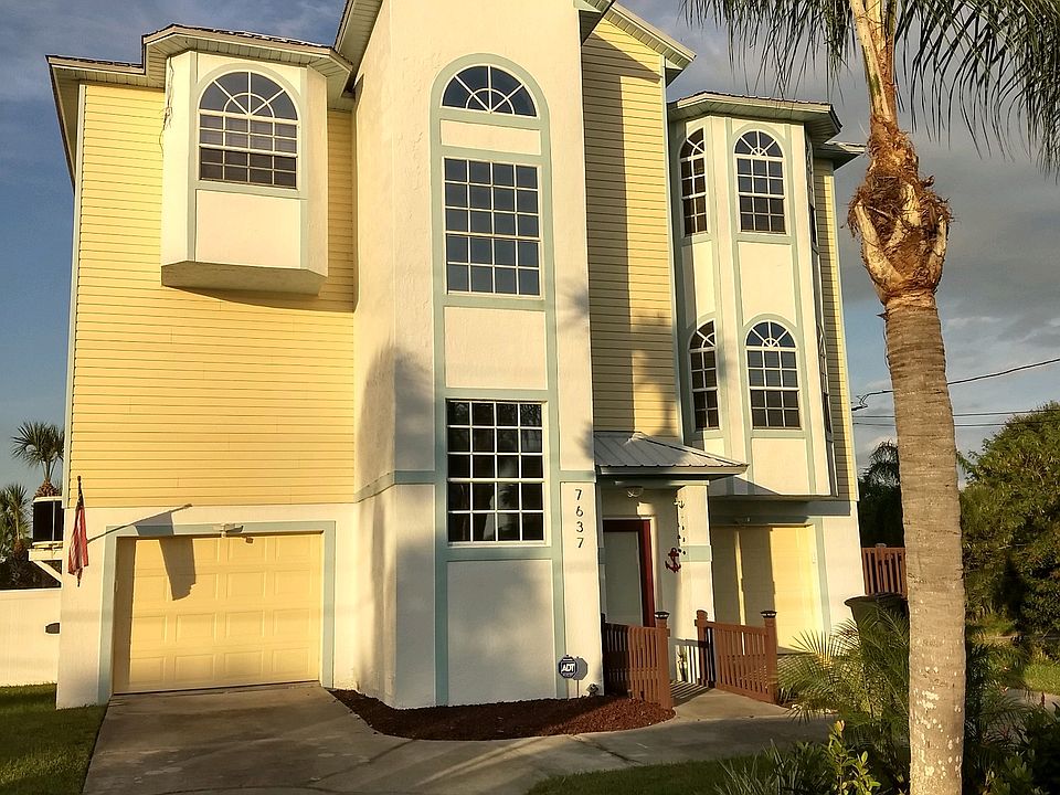 Resort style living with a waterview! Stretch out in this GORGEOUS Custom built home. Light-filled 6 bedroom 3.5 bath pool home on large lot. Quiet neighborhood with no side or back neighbors! Bright kitchen with white cabinets, and stainless appliances. Relax on either of the two huge balconies overlooking the water. Or work out in your own personal gym complete with all equipment included and a new sliding barn door. The saltwater pool is heated for those cooler days and great for your skin & hair! VERY SMALL BOATS, kayaks and jet skis can access the Gulf of Mexico from the private dock and be in open gulf water in minutes! If you have a LARGE BOAT the Marina is right around the corner. Wind down in the therapeutic hot tub with waterfall and ever changing colored lights, new cover added. Enjoy the newly built sun deck during the day or a bonfire in the evening. New features include the extra long 80' concrete driveway, perfect for boat or RV, with electrical added nearby. Quality vinyl fencing and gates. Pelican Water Filter & Water Softener with pro UV. The side yard was expanded to enhance your quarter acre plus lot. Balconies and exterior trim freshly painted. New microwave, dishwasher. New flooring & paint in both downstairs bedrooms. An automatic and programmable misting system was installed around the outside perimeter of the yard by Mosquito Guard. Other upgrades include Ring Doorbell and the Nest remote control heat/air. Truly one of a kind!