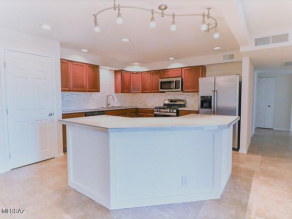 Step into a newly finished, fully renovated modern home. End unit only shares with 1 neighbor. Open floor plan - kitchen flows into living room that boasts huge north looking, floor length window with views of the Catalina Mountains. New tile flooring, new bedroom carpet, new windows, new paint, new light fixtures, ALL new kitchen, ALL new primary bathroom. Much much more come view and see for yourself!