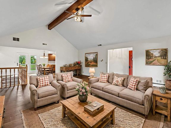 Discover this beautifully maintained ranch-style home on an acre with a thoughtfully designed open layout, perfect for both comfortable living and entertaining. With 3 spacious bedrooms and 3 full bathrooms, including a primary en suite, this home offers the ideal balance of style and functionality. The large finished basement is just one feature to love in this home. Providing comfort and savings, there is a new roof (2022), new water heater (2022), new garage door opener (2020), engineered hardwood in the main living areas (2020), and new carpet and paint throughout (2024). Built with energy efficiency in mind, the home features 4-inch insulated walls with urethane foam and dual heating options: a hot water boiler baseboard system or an electric heat pump. Step outside and enjoy the serene two-tier deck overlooking picturesque pond views, perfect for morning coffee or evening relaxation. Nestled conveniently between Fort Wayne and Columbia City, this location offers a blend of country tranquility and city accessibility. This home truly has it all—modern updates, energy efficiency, and breathtaking surroundings. Schedule your showing today!
