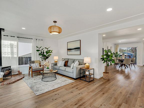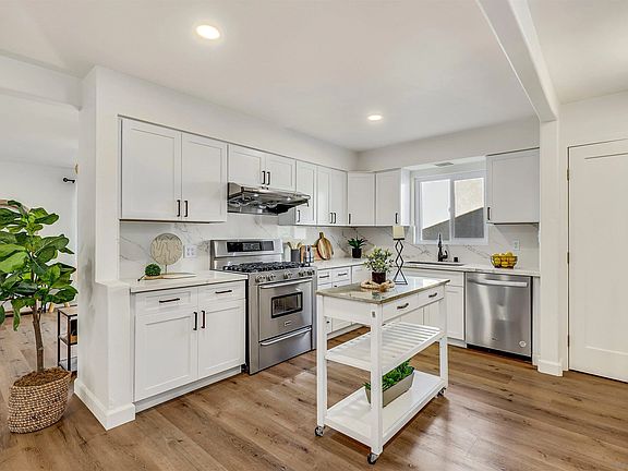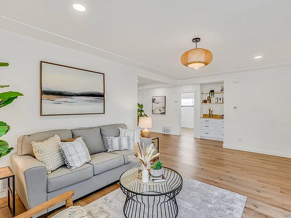 Beautifully remodeled La Mesa home boasts of luxury vinyl plank flooring throughout, OWNED SOLAR, central AC, recessed lighting and open, flowing floor plan and newer windows. ADU opportunity with the detached 2 car garage with private entrance. The living room exudes warmth making it the perfect place to gather with its large windows and wood-burning stove. The open kitchen has plenty of cabinet space, quartz countertops and backsplash, and stainless steel appliances. The inside laundry room is equipped with cabinets to keep you organized and has additional space to add pantry shelves or more storage space. The primary bedroom enjoys a walk-in closet and overlooks the backyard. Seller replaced roof, electrical panel, added EV charger, added central heat/AC, cast iron under house replaced with ABS, sewer main replaced. Ideally located only 3 miles from SDSU and I-8 for easy commuting. You are blocks from grocery stores, shopping and restaurants too. Don’t miss this opportunity!