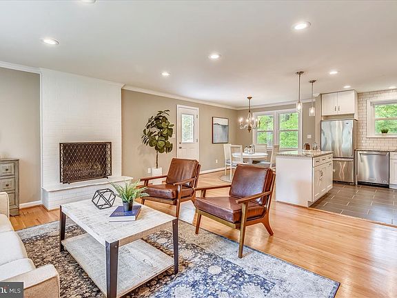 Newly polished home in North Springfield, with a large lot backing to wooded area with stream. Less than 3 miles to I-495, Long Pine is an excellent commuter location for work in Alexandria, Arlington, or DC. Tysons Corner shopping center is 20 minutes up I-495. The property is less than a mile to the Springfield Swim Club. Walk through the front door and up the stairs to the open upper level. The kitchen, with clean white cabinets, granite countertops, and stainless steel appliances is separated from the dining and living rooms by an island, providing extra counter space and storage options. The dining area, with its large picture window facing the backyard, and easy access to the attached carport, gives the whole family a space to gather for meals. The living room, complete with a bay window to the front of the home, creates a cozy atmosphere for cold winter evenings settled around the wood-burning fireplace. Down the hall are three bedrooms, all with hardwood floors. The hall bathroom has a tub shower. The master is the last on the right, with a ceiling fan and an upgraded ensuite bathroom with a stall shower. All windows and doors (with the exception of the back French doors) were replaced in the last four years. The lower level includes a spacious, newly carpeted second family room, also with a wood-burning fireplace. Across from the built-ins is a wet bar and access to the back flagstone patio, making the downstairs space great for entertaining, both inside and outside. A fourth bedroom is downstairs, with a renovated full bathroom in the same hall - creating a separate and peaceful suite area for overnight guests. The utility room, which houses the washer, dryer, and shelving units, serves as a space for extra storage. The yard is sprawling, both in the front and the back. The flagstone patio out back, bordered by stone flower beds on the right, sits at the top of the slightly sloping grassy hill. The yard leads into the wooded common area, complete with a stream - a lovely natural atmosphere for relaxing. Brand new shed provides extra outdoor storage.